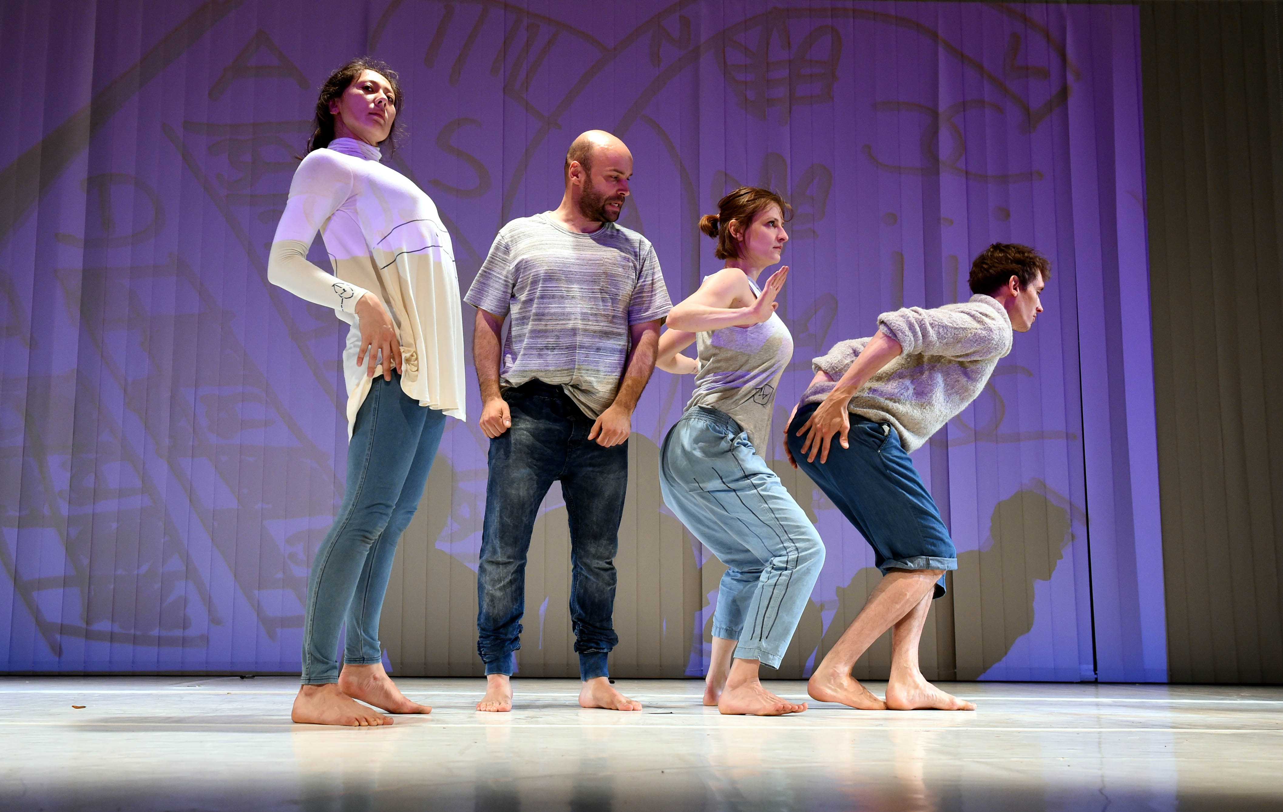 Vier Schauspieler stehen locker auf der Bühne. Es gibt eine Vorstellungsrunde. Dann ist die Bühne leer. Es beginnt.
