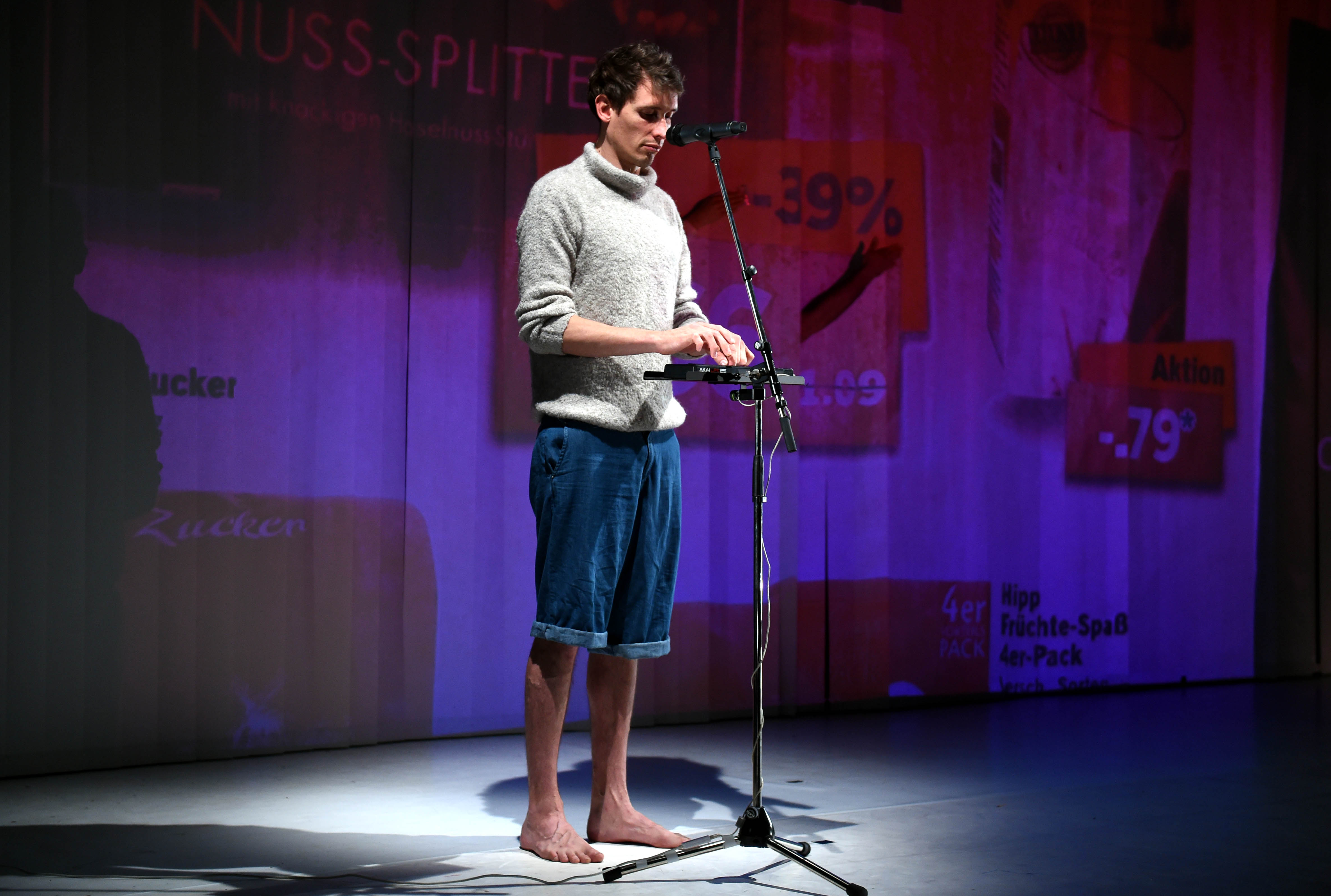 Heidelberg, 4. Mai 2017. Kann mir einer von euch zwanzig Euro leihen?“, fragt Manuela Neudegger ins Publikum. „Ich meine das ernst. Ich brauch die jetzt wirklich.“ Schnell ist eine Erwachsene aus dem Publikum bereit, der Performerin einen Schein zu reichen. „Du kriegst sie auch nachher zurück.“ Der Schein landet unter einer Kamera und wird auf den Vorhang im Hintergrund der Bühne projiziert. Da hängt es nun, das Objekt der Sehnsucht. „Liebe zwanzig Euro. Wir haben uns schon lange nicht mehr gehört. Aber jetzt brauche ich dich sehr“, wird Neudegger später beten.