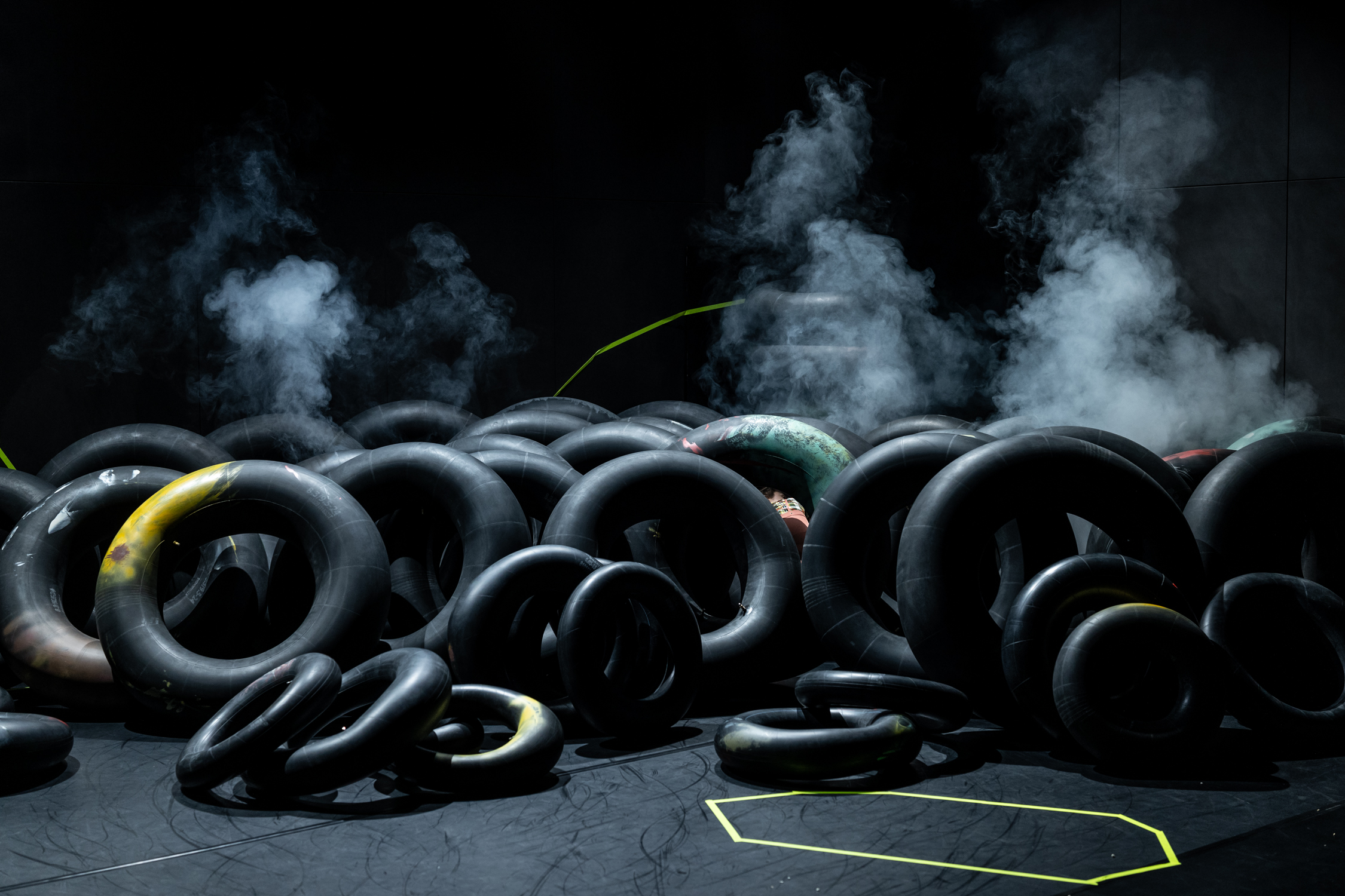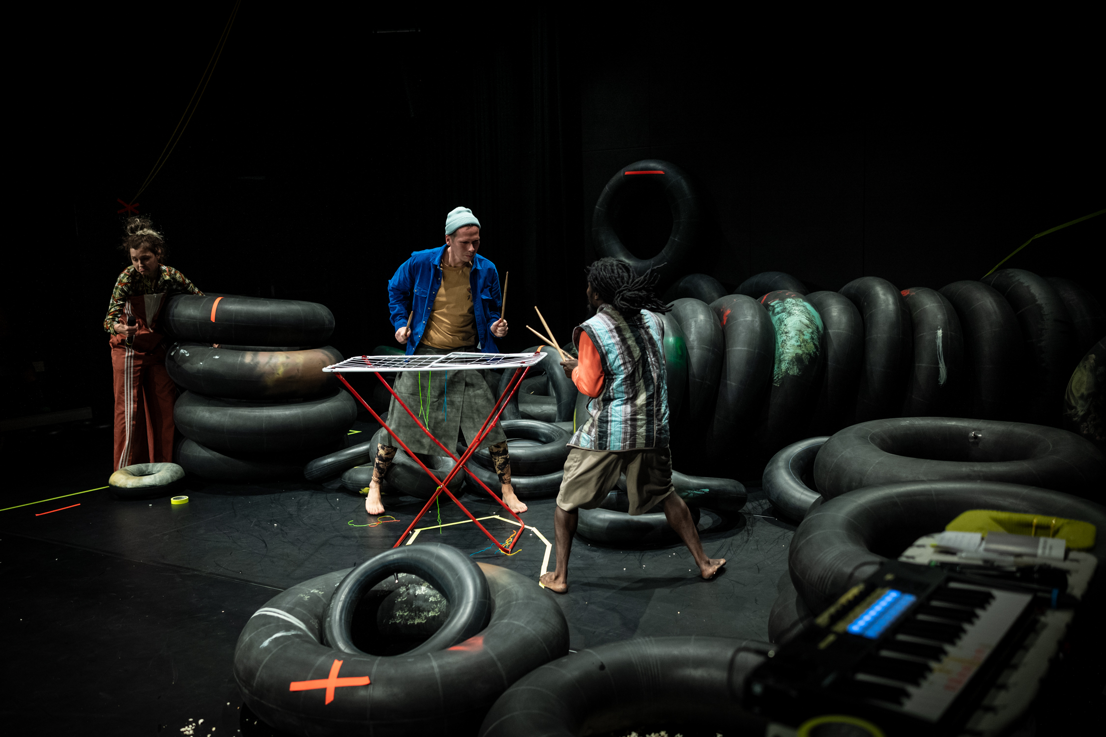 Das Publikum hat die Möglichkeit auf Sitzreifen, anstelle von Stühlen zu sitzen.