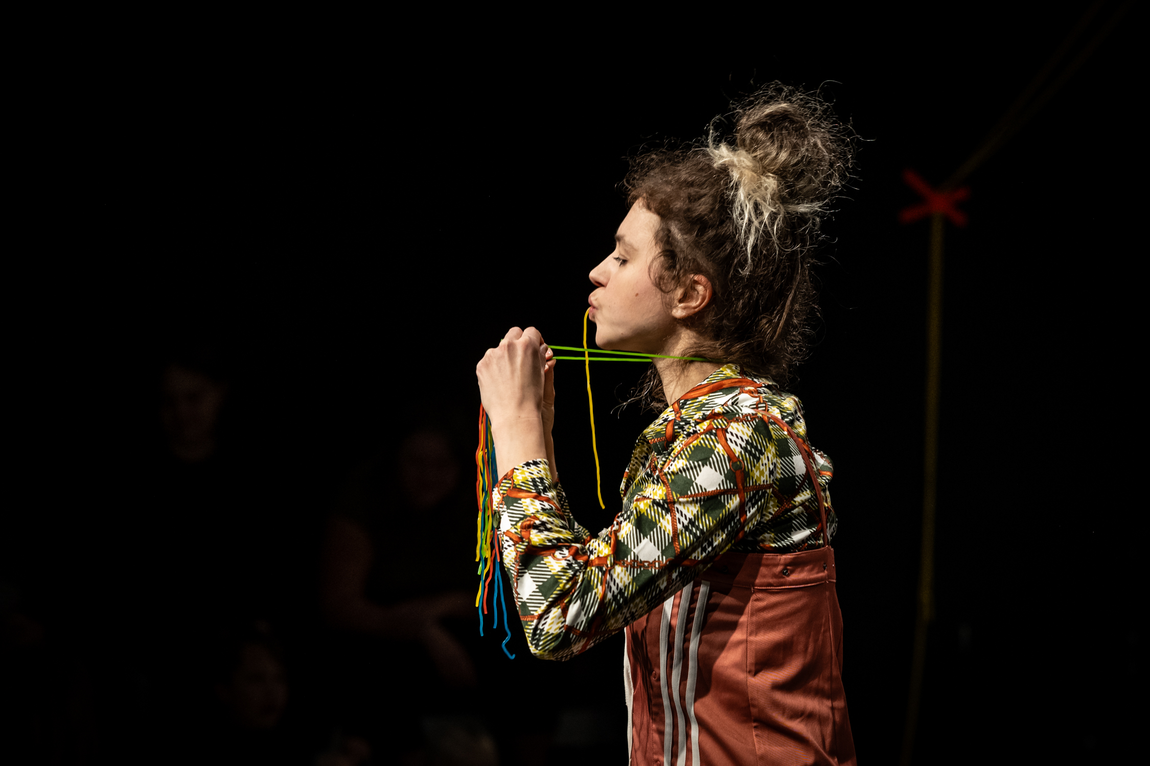 Das Publikum wird direkt von der Performer:innen angesprochen und in das Bühnengeschehen eingebunden.