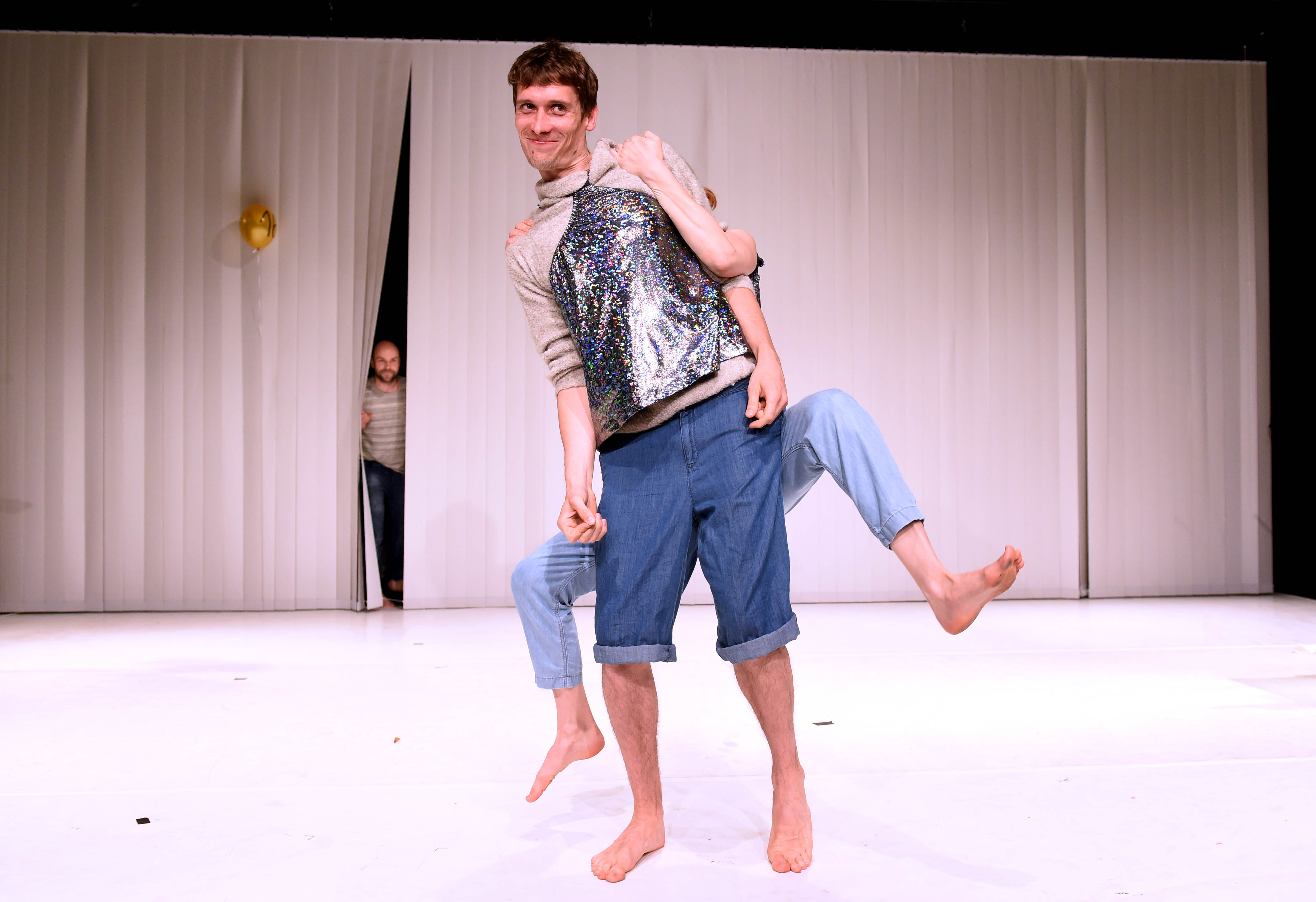Eva von Schweinitz: Zum einen ist uns wichtig, das Thema nicht zu romantisieren oder zu beschönigen. Gleichzeitig wollten wir es aber auch nicht zu einem Betroffenheitsstück machen, sondern mit Humor und Leichtigkeit daran gehen. Grundsätzlich arbeiten wir mit einer nüchternen, klaren Performerhaltung und setzen weniger auf Emotionen und klassische Identifikation. Trotzdem haben wir eine Biographie entwickelt, die rückwärts erzählt wird. Vom 21. Lebensjahr bis zum Tag der Geburt.