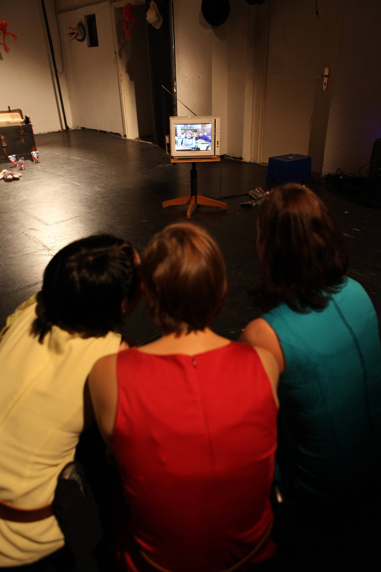 Wer kennt sie nicht, Pippilotta Viktualia Rollgardina Pfefferminz Efraimstochter Langstrumpf oder kurz Pippi Langstrumpf. Für Generationen von Kindern – ganz besonders von Mädchen – ist sie ein Vorbild, jeder möchte so sein wie sie. 1945 veröffentlichte Astrid Lindgren das erste Buch mit ihrer unkonventionellen Heldin, Anfang der 70er Jahre machte Pippi Langstrumpf das Fernsehen unsicher. Mit ihrem Stück „Efraims Töchter“ brachte nun die Theatergruppe „pulk fiction“ die Figur Pippi Langstrumpf vergangene Woche auf die Bühne der „Alten Polizei“ und auch in das Hier und Heute: mit moderner Musik und Videoeinspielungen für die Kids von heute. Die drei Schauspielerinnen von „pulk fiction“ wollen alle wie Pippi sein: Stark, mutig und unabhängig. Die Bühne teilen sie sich mit der bekannten Pippi Langstrumpf aus dem Fernsehen: Immer wieder beziehen die drei Schauspielerinnen Szenen aus den Filmen mit ihre Aufführung ein, per Video auf einem Fernseher, der dekorativ auf der Bühne steht. Doch die drei müssen erkennen, dass vieles von dem, was Pippi vorlebt leider nur in Astrid Lindgrens Geschichten funktioniert: Denn zum Mut gehört auch die Angst, zum Starksein auch die Schwäche. Selbst die Hauptdarstellerin und das Gesicht der Pippi Langstrumpf Filme Inger Nilsson kommt in einem alten Interview zu Wort: Ich bin nicht Pippi, nur ein normales Mädchen, berichtet sie von ihrem Leben mit Pippi. Die drei Möchtegern-Pippis auf der Bühne sind auch nicht immer stark und mutig: Die eine wird gehänselt wegen ihrer Arizona-Jeans, die halt keine Levis-Jeans ist, eine andere traut sich nicht vom drei-Meter-Brett zu springen und die dritte spielt ganz gut Fußball, aber halt nur für ein Mädchen, sagen die anderen. Es geht um Anerkennung, um Stärke auch in der Schwäche. Alltägliche Probleme, die viele Kinder und Jugendliche kennen. Pippi hat diese Probleme nicht, denn sie ist ja stark und mutig, zeigt nie eine Schwäche. Auch nicht als sie allein Geburtstag feiern muss, denn ihre Mutter ist ja schon lange tot und der Vater nie zu Hause. Hier spenden die Hauptdarstellerin ihrem Vorbild ein paar echte Tränen. Das Theaterstück „Efraims Töchter“ hat alles, was Jugendliche von einem zeitgemäßen Theaterstück erwarten dürfen: Immer wieder schlüpfen die Hauptdarstellerinnen in verschiedene Rollen, sorgen mit ihrem wilden und lauten Spiel für Action auf der Bühne und erzählen gleich darauf wieder ruhig und zerbrechlich von ihren Schwächen.
