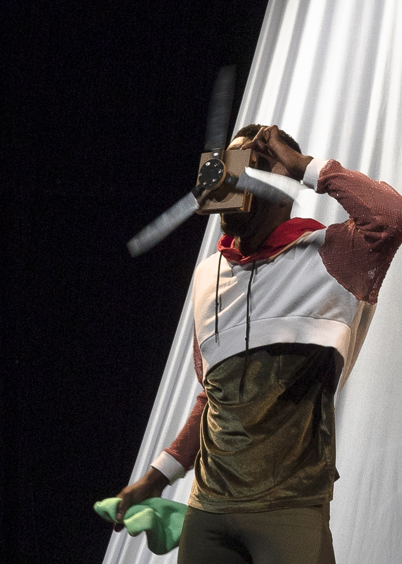 Ausgehend von dem Kinderbuch Hieronymus von Thé Tjong-Khing nach Motiven von Hieronymus Bosch, in dem der Autor einen kleinen Jungen in fantastische Landschaften mit merkwürdigen Kreaturen schickt, wird mit Musik und Tanz, Projektion und elektronisch animierten Objekten eine Phantasiewelt erschaffen, die verzaubert und gleichzeitig nach Wesentlichem fragt.